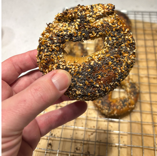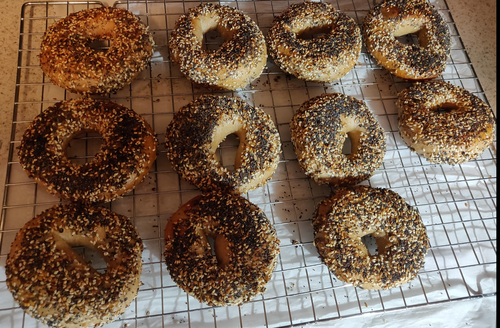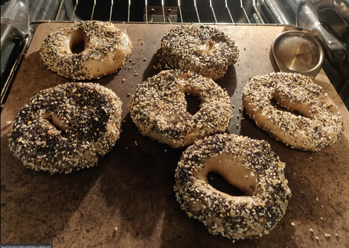 Note: If using a baking stone, I recommend cleaning off the excess seeds between batches. I use a dough scraper and and plate. This prevents burnt seeds from getting onto your 2nd batch of bagels. Also Since the over door has been open for a bit, I usually put the temperate back at 500F (260C) for 8 minutes.