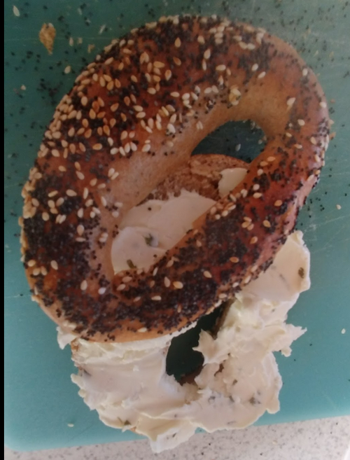 Don't be stingy with your cream cheese. This is an important rule. Slather it on. I prefer scallion cream cheese but you do you. I find the Liberte brand in Canada is the best, but you can't go wrong with Philadelphia. Experiment with what you look: lox, tomato, butter.