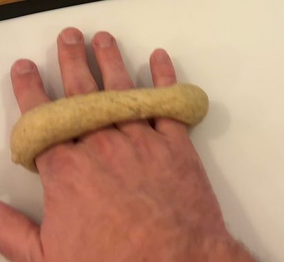 3) Push the ends together and then roll on your work surface until you've formed the final bagel shape.